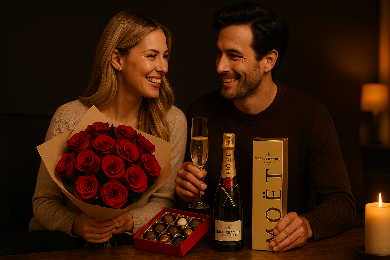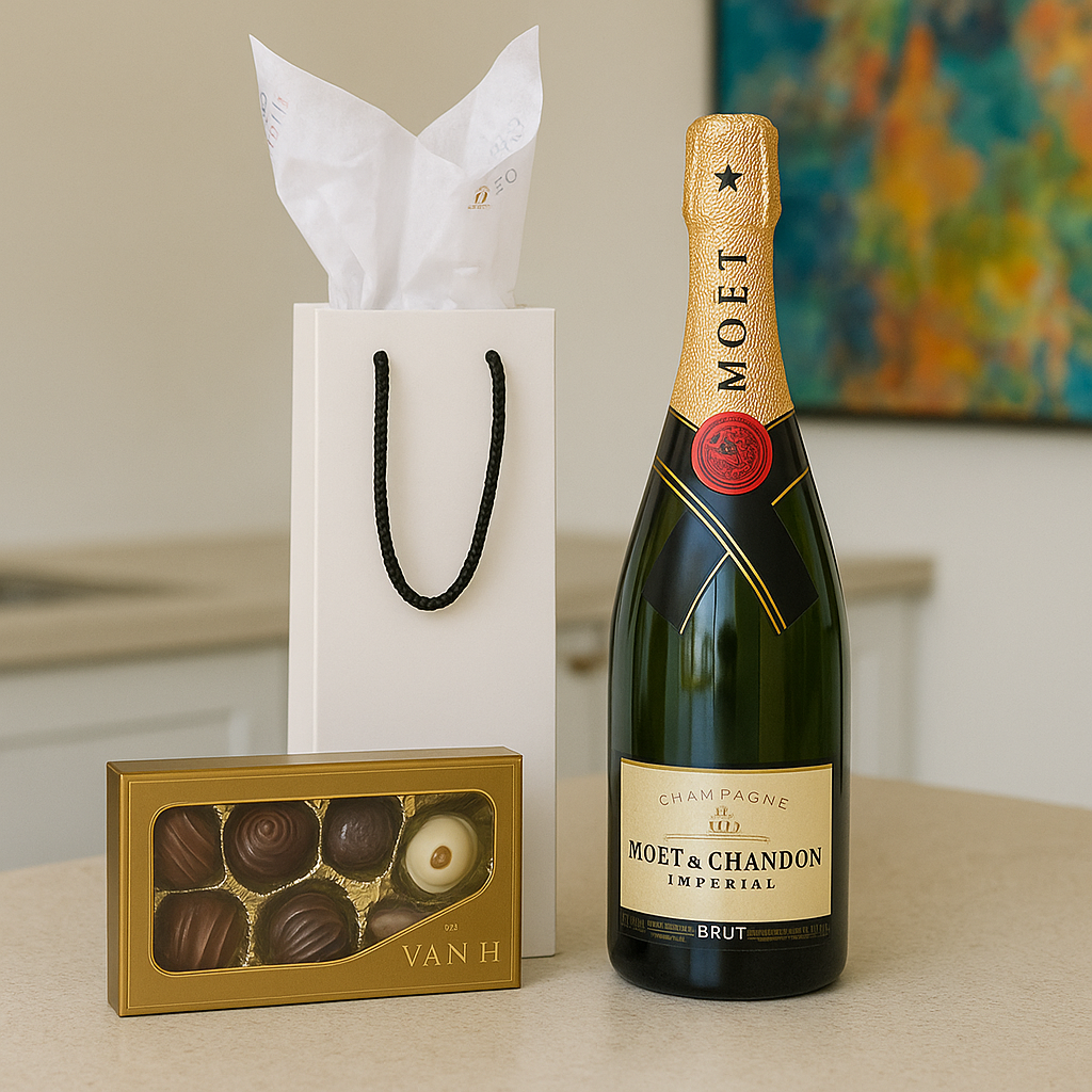 Elegant flowers paired with chocolates or bubbly